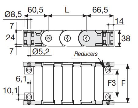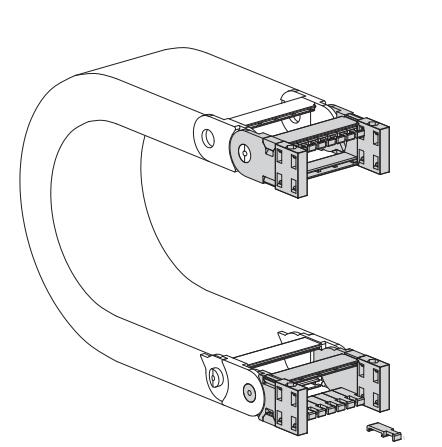 內部高 (D) 25 mm,尼龍拖鏈帶有大的中心抗磨銷軸的單鏈節結構,同樣抗扭抗拉。可以提供垂直的分隔片。如果使用導向槽,這種拖鏈特別適合長行程應用。